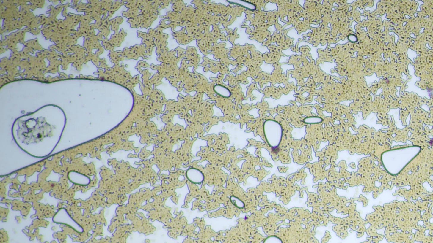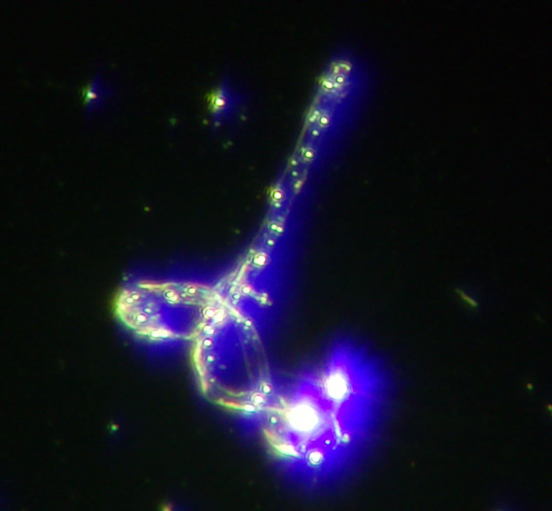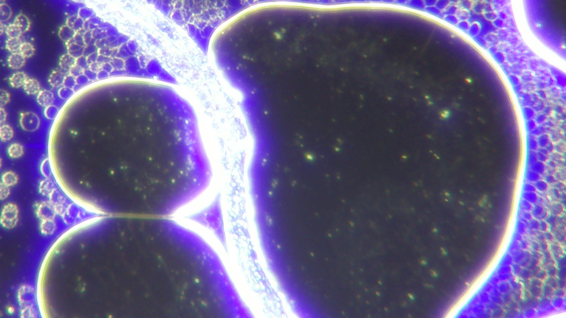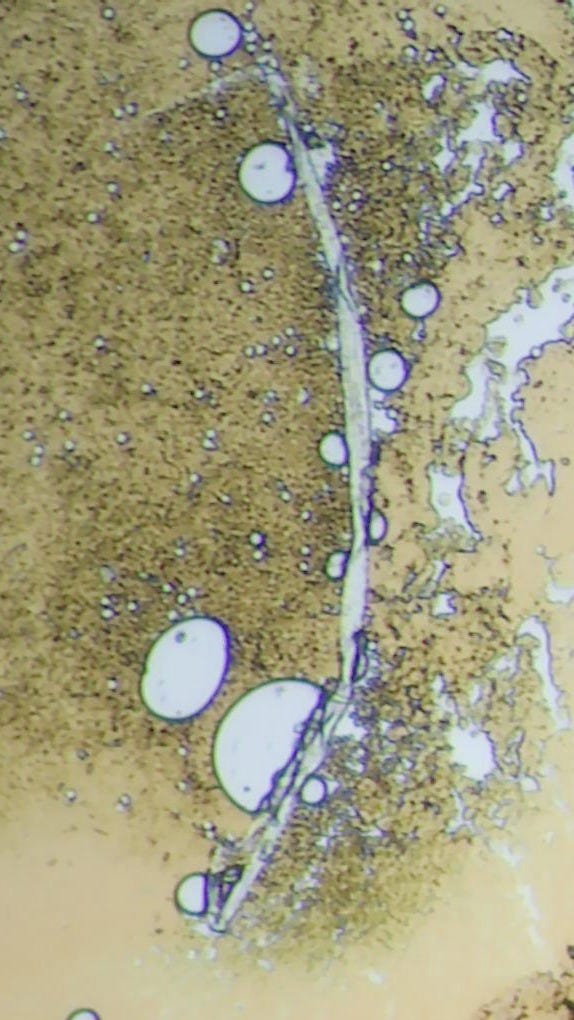 This creature, who some might refer to as a Hydrogel Strand, and others as: ‘Cross Domain Bacteria (CBD).’ is surrounded by air bubbles or wanna-be ‘Multi-lamellar vesicles.’ (For information on these, see Karl C’s post, entitled: “Self-assembly, Multi-lamellar vesicles, and structures formed within the blood.” posted on Karl.C’s Substack on October 1, 2024.)