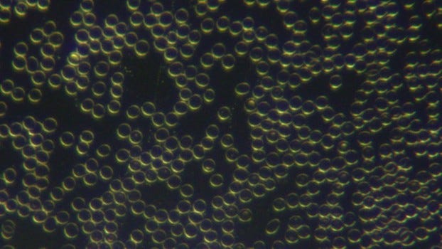 Something else bothered me too. After forty minutes on the slide, the boundaries of my red blood cells were still intact, but many of them were empty inside.